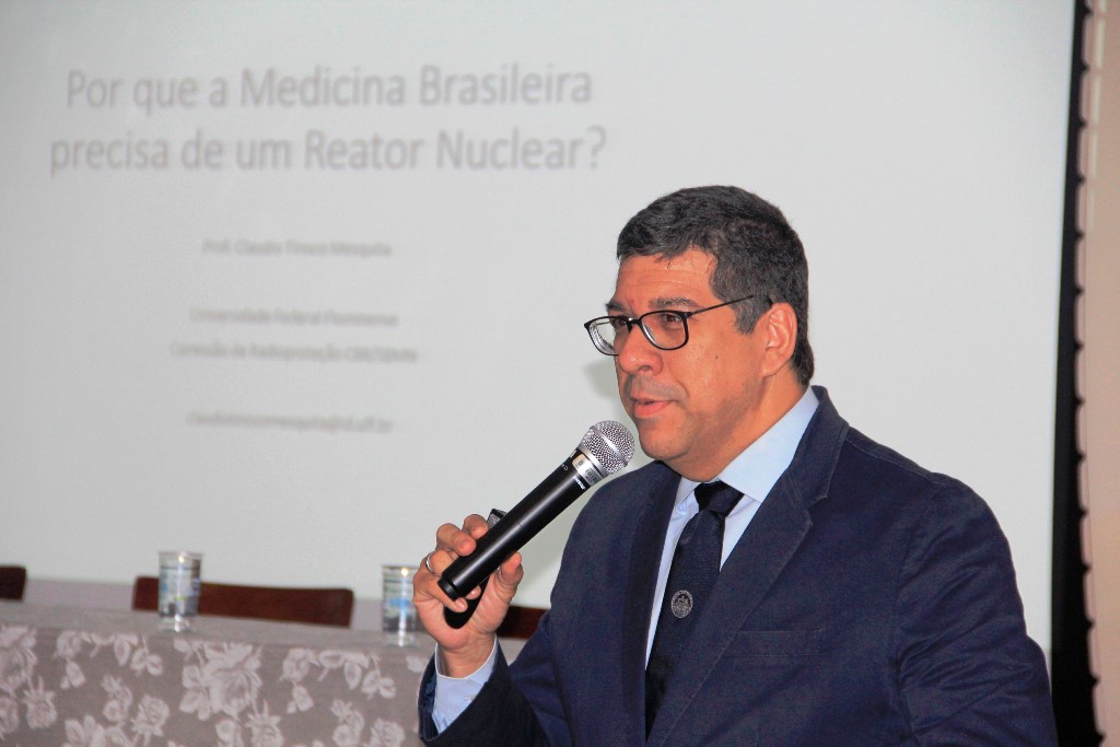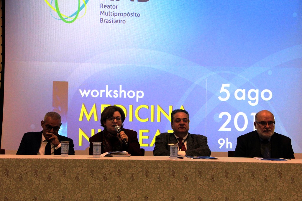 Ao longo do dia, foram proferidas as palestras “Do radioisótopo à medicina nuclear” (Renato Dimenstein), “O RMB e as suas possibilidades” (Perrotta), “Radiofármacos” (Jair Mengatti), “As possibilidades na medicina nuclear (Carlos Alberto Buchpiguel), “A importância da regulação e do apoio das sociedades profissionais nos usos de radiação e radioisótopos na medicina” (Roberto Segreto), “Por que a medicina brasileira precisa do reator multipropósito” (Cláudio Tinoco Mesquita), “Os profissionais que atuam com radiação na área da saúde” (Rosângela Corrêa Villar) e “Radiologia em radioterapia” (Helena Regina Comodo Segreto).