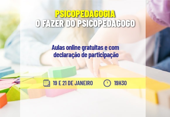 O curso de Especialização em Psicopedagogia promove nos dias 19 e 21/1 (terça e quinta-feira), das 19 às 21h, duas aulas online, onde o estudante poderá conhecer mais sobre área de atuação do psicopedagogo.