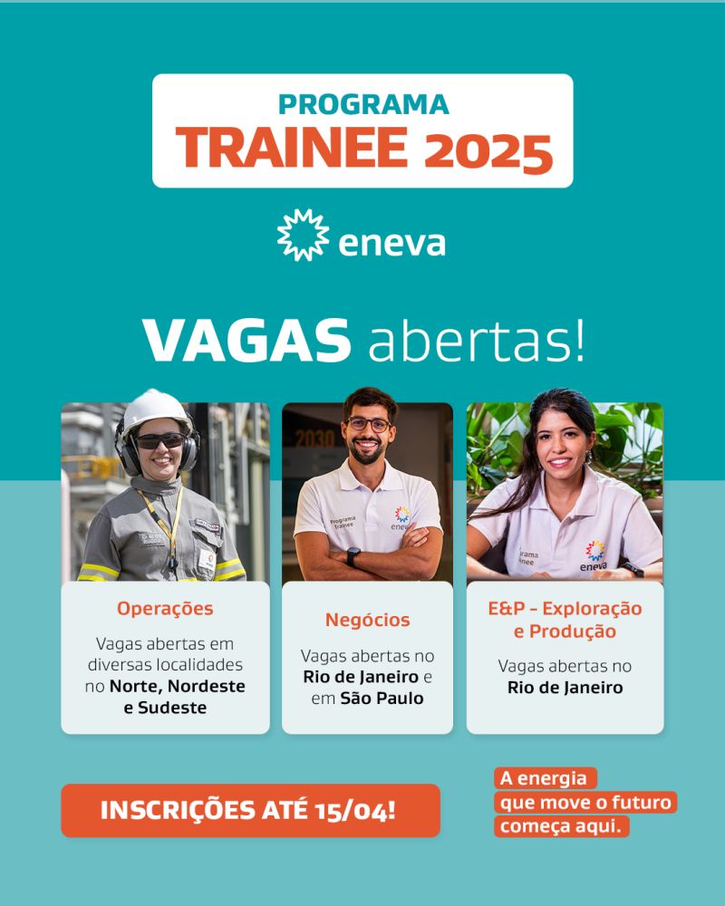 O Setor de Estágio da PUC-SP divulga que a empresa Eneva está com inscrições abertas para vagas de estágio treinee.