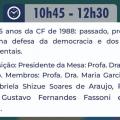 10h45 às 12h30: Mesa: 35 anos da CF de 1988: passado, presente e futuro na defesa da democracia e dos direitos fundamentais.