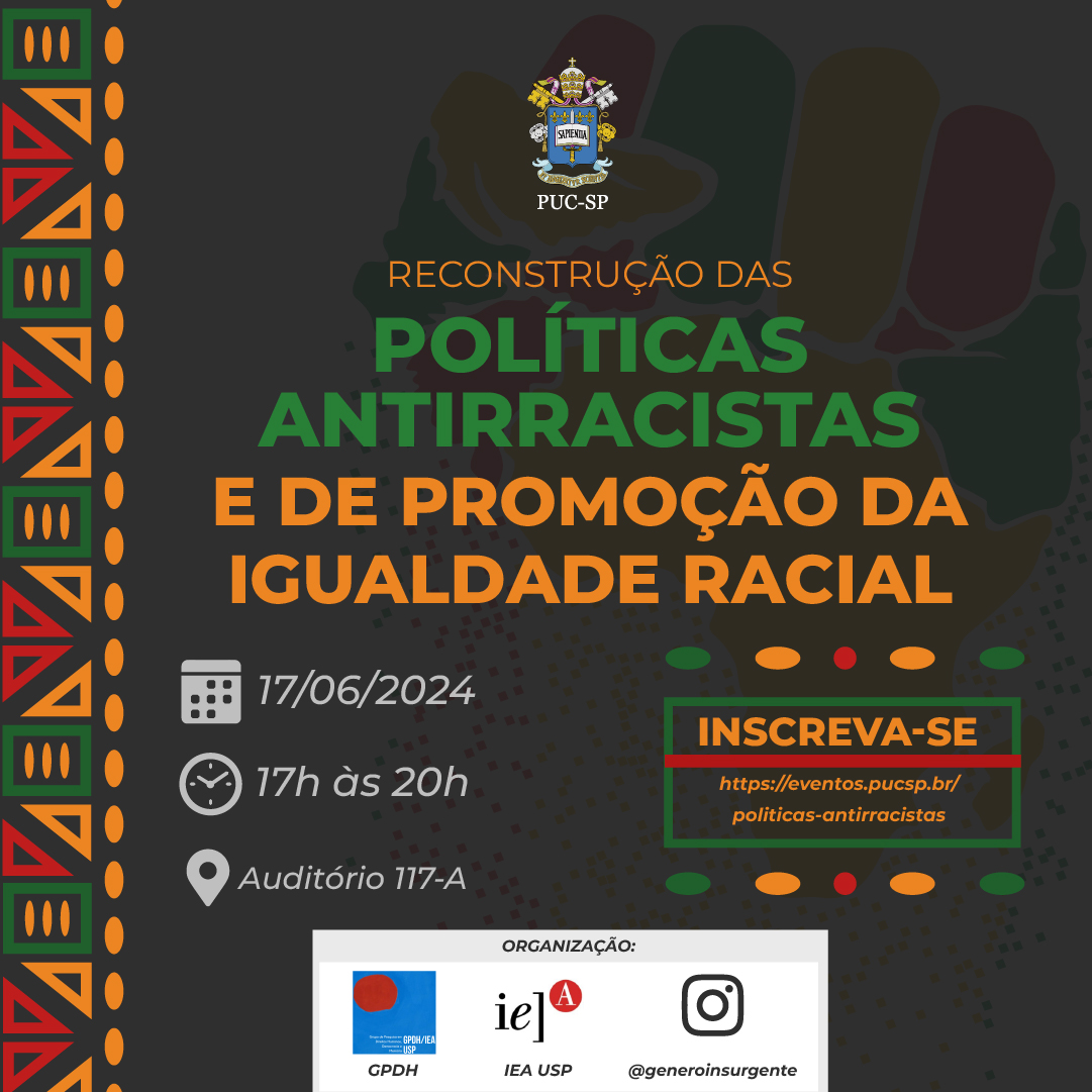 Estão abertas as inscrições para o evento Reconstrução das políticas antirracistas e de promoção da igualdade racial, que se realizará dia 17/6, das 17 às 20h.