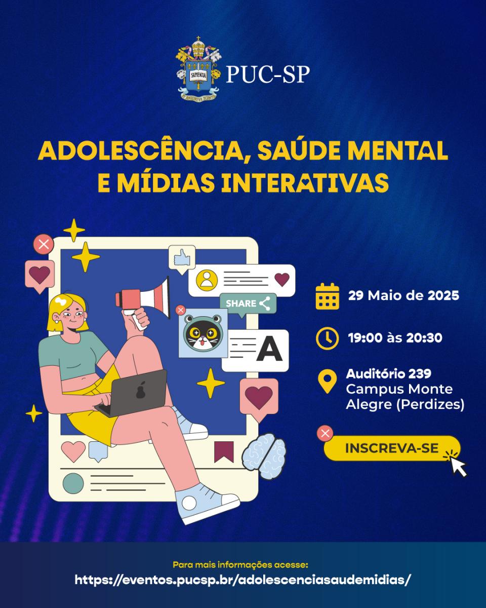Atualmente, a PUC-SP também oferece o curso de Extensão "Adolescência: Saúde Mental e mídias interativas" (clique aqui e saiba mais).
