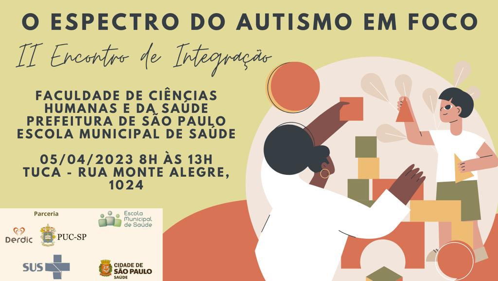 No dia 5/4, das 8h às 13h, acontece o evento "O Encontro do Autismo em Foco", no Tuca (Rua Monte Alegre, 1024).