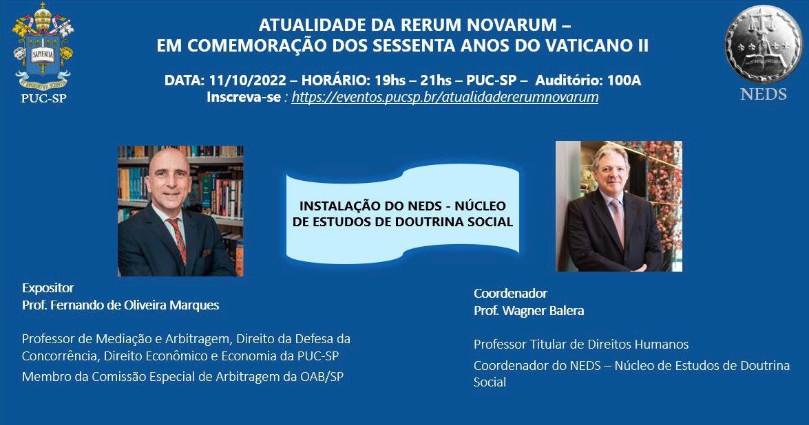 Dia 11/10, às 19h, se realiza o evento Atualidade da Rerum Novarum - Em comemoração dos Sessenta anos do Vaticano II.