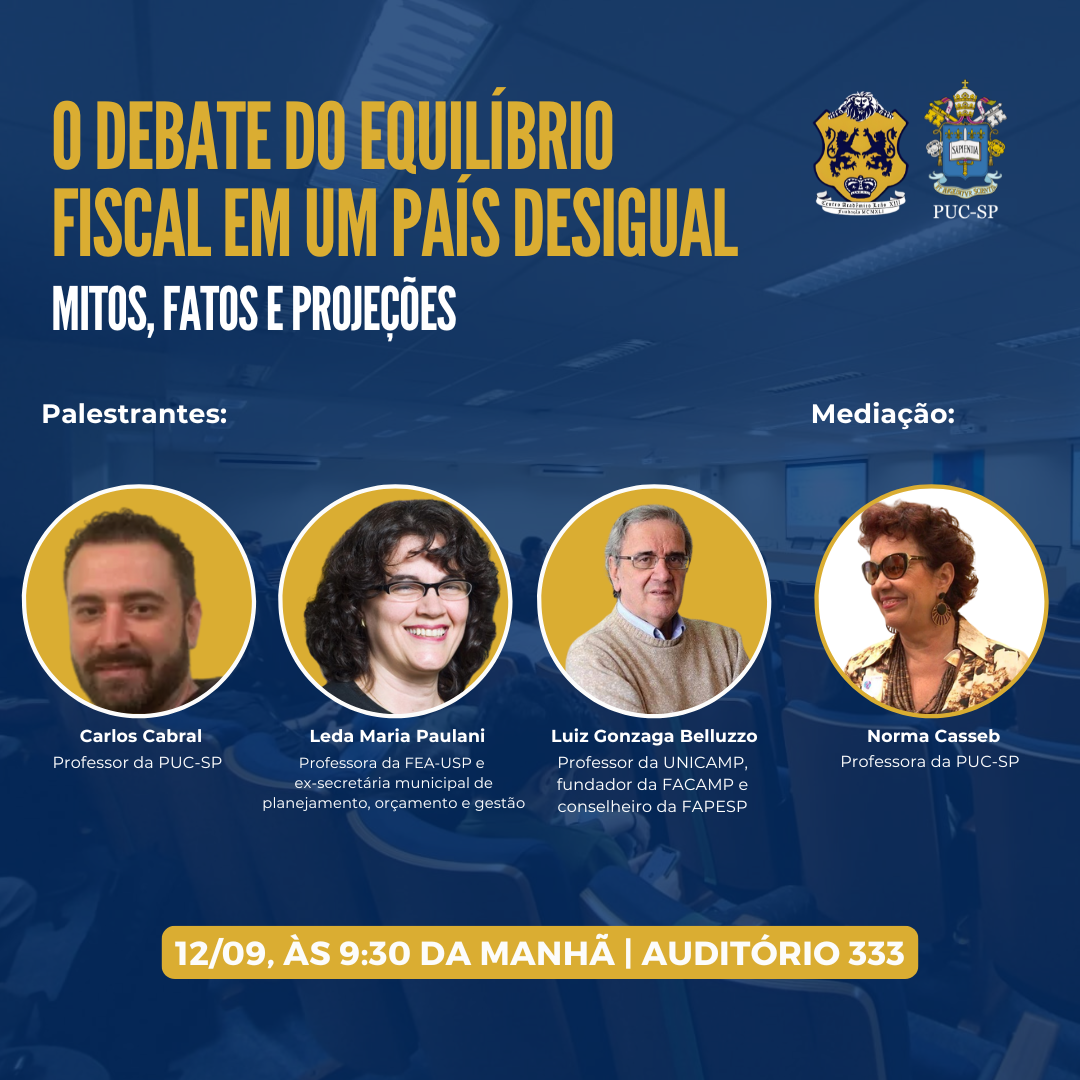 No dia 12/9, às 9h30, no auditório 333 (3º andar do prédio novo), acontece "O Debate do Equilíbrio Fiscal em um País Desigual - Mitos, fatos e projeções"
