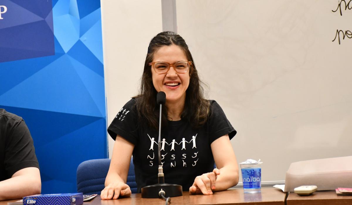 A prof. Léslie Piccolotto Ferreira (Fonoaudiologia), uma das organizadoras do encontro, falou sobre a importância da integração das áreas do conhecimento envolvidas. “Estamos aqui em um evento de integração entre cursos (Pedagogia, Fisioterapia e Pedagogia) da PUC-SP, que estão juntos para conversar, discutir questões relacionadas ao atendimento à pessoa com deficiência. O objetivo é que nossos alunos possam sair formados para ouvir aqueles que têm algum problema, alguma deficiência, seja de aprendizado ou na parte da saúde, enfim, saúde e educação de mãos dadas. Tudo voltado à formação de nossos alunos”, relata a docente.