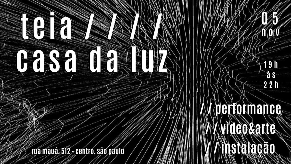 O prof. Marcus Bastos e os estudantes Rodrigo Gontijo e Patrícia Moran (Comunicação e Multimeios) são os organizadores do evento de performance, videoarte e instalação Teia – Casa da Luz. A atividade será realizado dia 5/11, das 19 às 22h, na rua Mauá, 512.