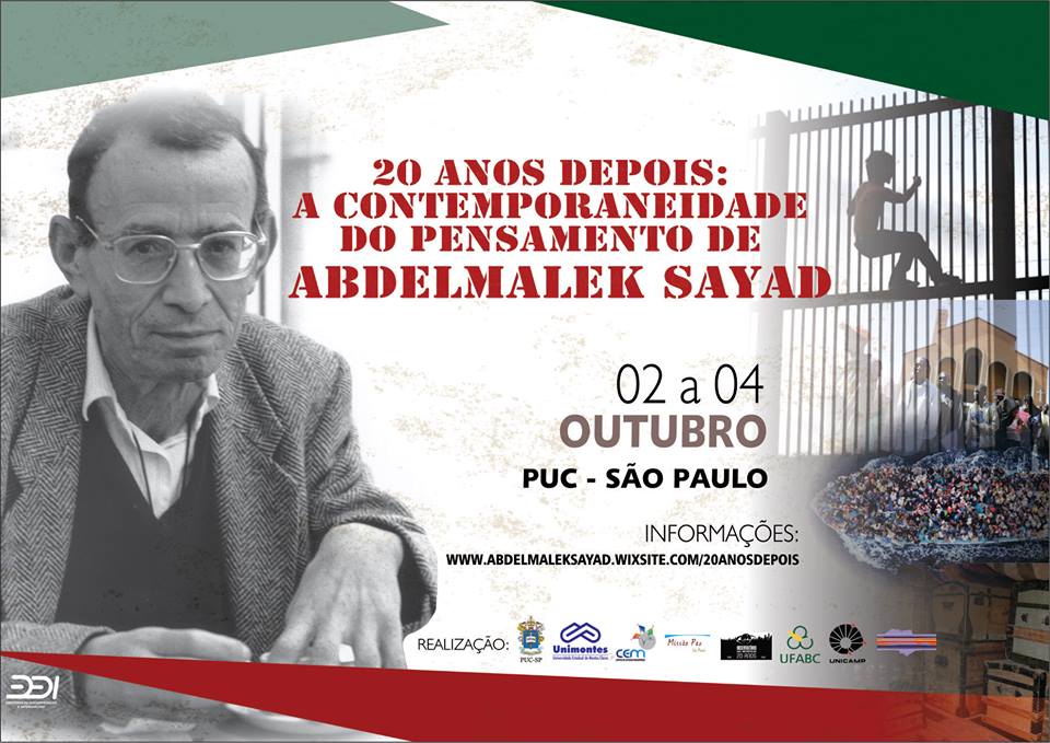 A Faculdade de Ciências Sociais realiza, de 2 a 4/10, no Tucarena, o Evento Internacional Migrações – “20 anos depois: A Contemporaneidade do Pensamento de Abdelmalek Sayad”, sociólogo de origem argelina e reputação internacional, que deixou importante contribuição para os estudos migratórios. Para informações sobre a programação e inscrições, clique aqui.