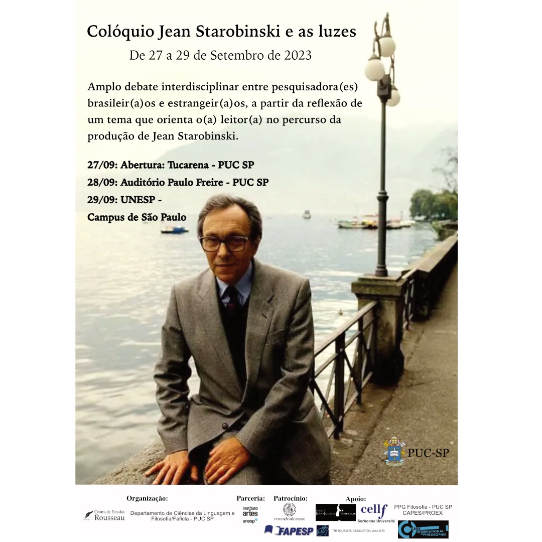 De 27 a 29/9, acontece o Colóquio Jean Starobinski e as luzes, um amplo debate interdisciplinar entre pesquisadores brasileiros e estrangeiros, a partir da reflexão de um tema que orienta o leitor no percurso da produção de Jean Starobinski.