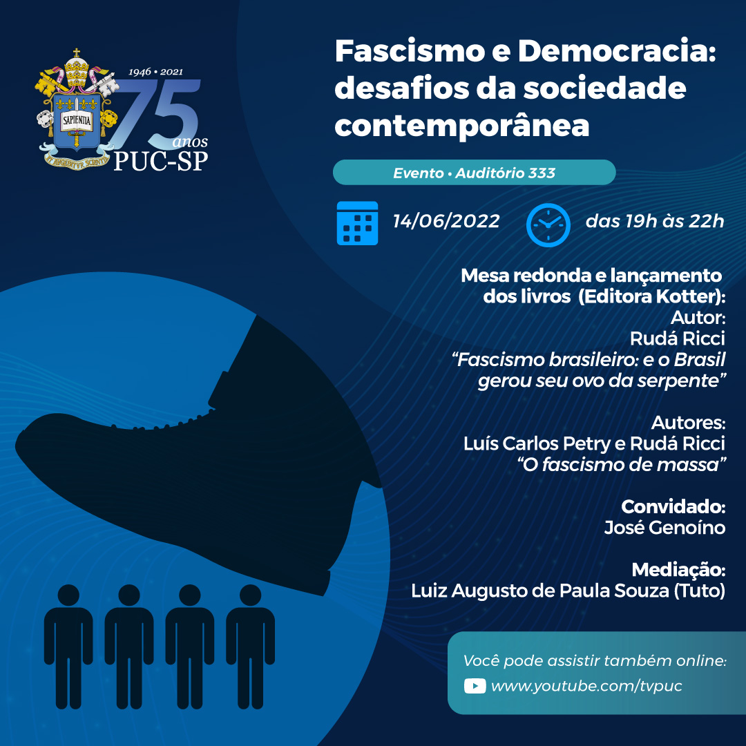 Dia 14/6, às 19h, acontece o evento Fascismo e Democracia: desafios da sociedade contemporânea.