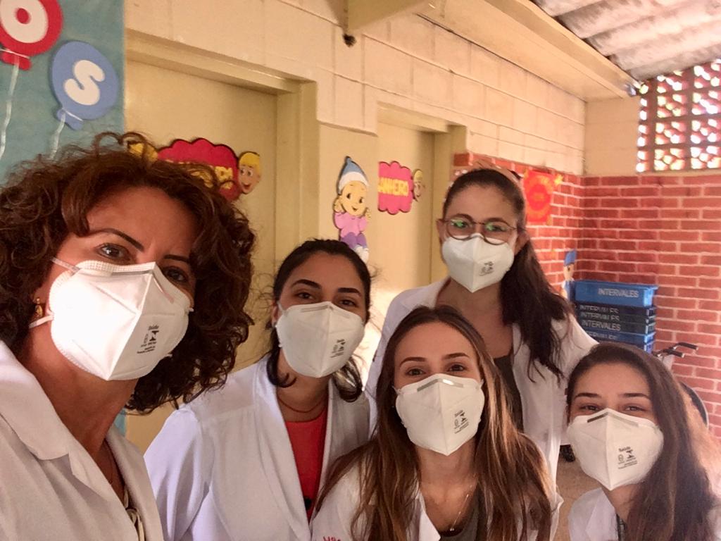 O professor Coscia esteve na UBS do Parque Bela Vista, juntamente às alunas Luiza Bertonha, Rafaela Ramos Smaniotto, Maria Beatriz Cantú Tavares e Alícia de Oliveira Mendes (as três primeiras são do 3º ano e a última, do 4º ano).