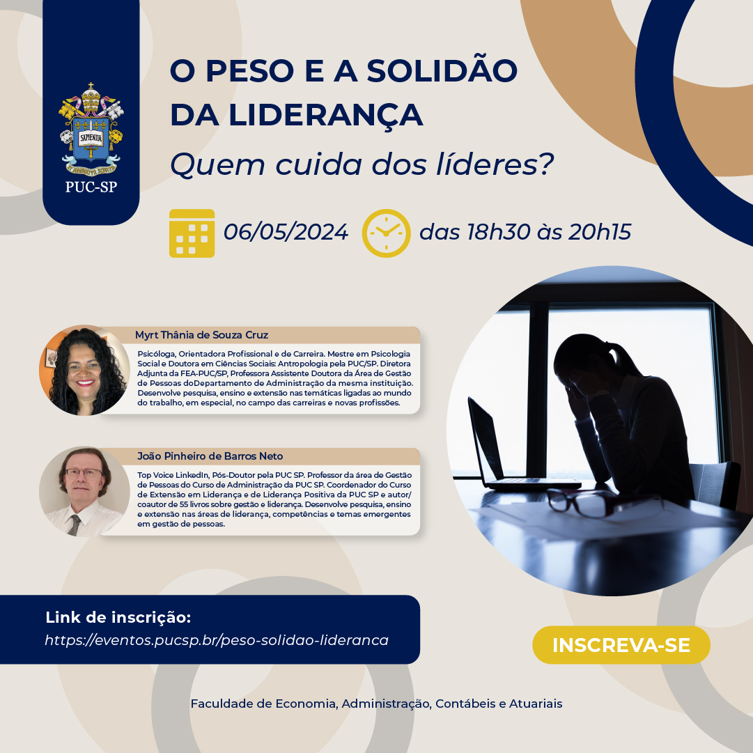 A Faculdade de Economia, Administração, Contábeis e Atuárias (FEA) promove o webinar O peso e a solidão da liderança: quem cuida dos líderes?