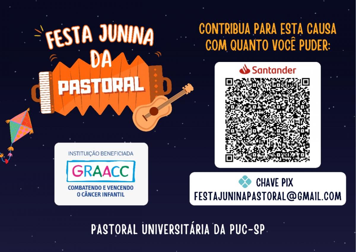 A Pastoral Universitária da PUC-SP, pela primeira vez, trouxe esse clima para dentro da Universidade ao realizar a sua Festa Junina Solidária no dia 12 de junho de 2025. A ação, organizada em parceria com a Lanchonete Tradição, a Toca do Leão, a barraca da pipoca do Edson, a barraca do milho do Luiz e o Coletivo Locomoção, animou a quinta-feira com músicas, bandeirolas, jogos e pratos típicos da época. O melhor de tudo isso é que a arrecadação será integralmente destinada ao GRAACC, instituição dedicada ao diagnóstico e tratamento do câncer infantojuvenil. Para nossa surpresa, a comunidade compareceu em grande número e, devido ao alto consumo, que fez com que os comes e bebes acabassem cedo, tivemos que terminar a festa antes do horário previsto. Como foi a nossa primeira experiência, aprendemos que, para uma próxima vez, devemos estar preparados para receber mais participantes.