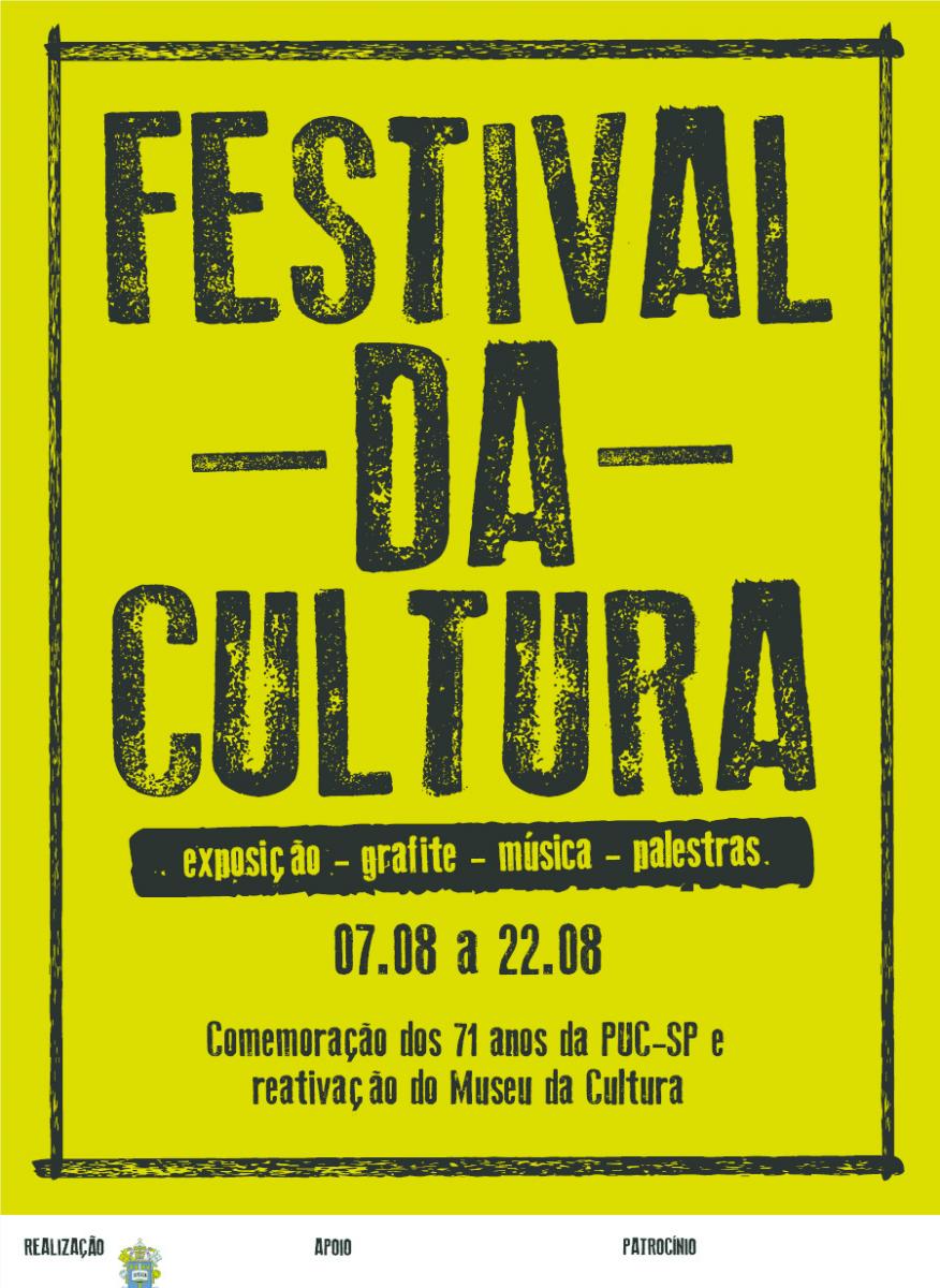 Exposição com fotos inéditas da história da PUC-SP, retomada do Museu da Cultura, atrações artísticas, acadêmicas e gastronômicas integram o Festival da Cultura, organizado para marcar as comemorações dos 71 anos da PUC-SP. O aniversário é só em 22/8, mas as atividades começam já nesta segunda-feira 7/8, com conferência do prof. Alípio Casali (Pós em Educação: Currículo). Clique aqui para ver a programação completa.
