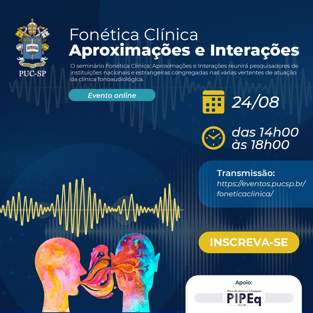 Informações, inscrições e transmissão: https://eventos.pucsp.br/foneticaclinica.