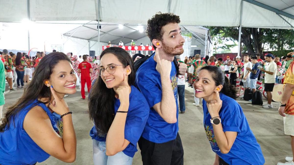 Durante o Carnaval, as alunas, com o auxílio de estudantes e professores de graduação e pós-graduação de fonoaudiologia da PUC-SP, foram a bloquinhos, eventos e escolas de samba para entregar protetores auriculares e panfletos com informações sobre a conscientização e prevenção de danos auditivos.