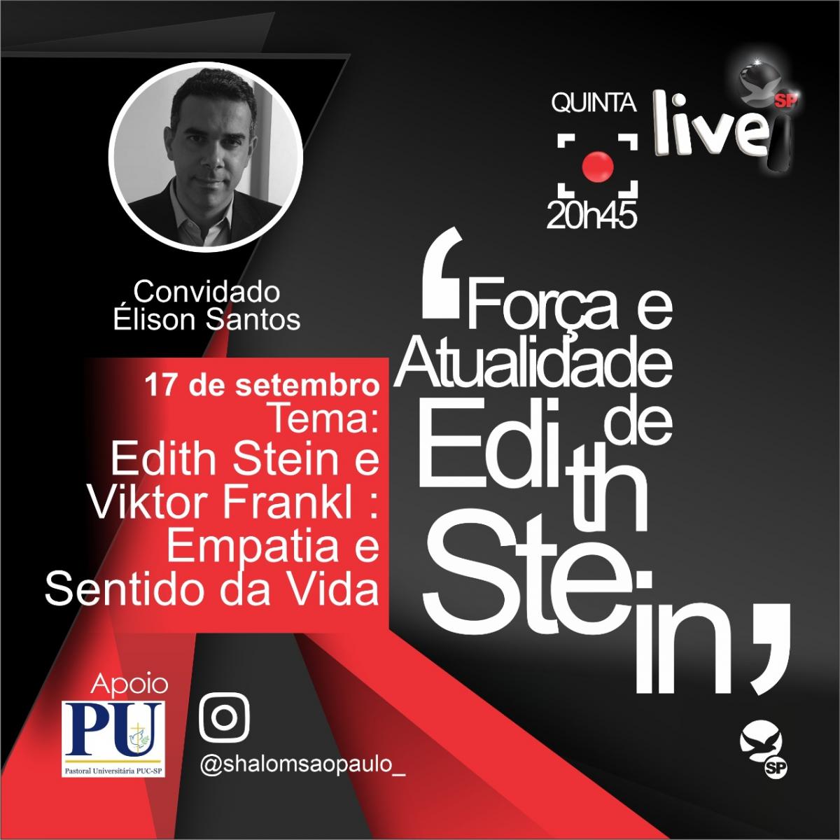 Na próxima quinta-feira (17/9), às 20h45, a Shalom São Paulo, em parceria com a Coordenadora da Pastoral Universitária da PUC-SP, realiza mais uma live da série Força e atualidade de Edith Stein. O convidado da semana é Elison Santos.
