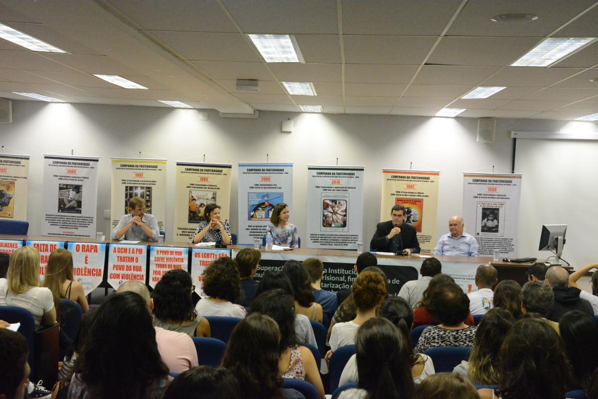 A PUC-SP recebeu, dia 20/2, o evento Pela superação da violência institucional: diminuição da população prisional, fim da política de “guerra às drogas”, e desmilitarização e não criminalização das pessoas pobres e das lutas populares, uma parceria da Universidade com a Arquidiocese do Estado de São Paulo e Coordenação para o Serviço da Caridade, Justiça e Paz.