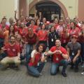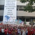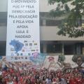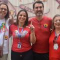 Hoje (28/10), funcionários e alguns professores da PUC-SP se reuniram na frente da Reitoria, do Tuca e na rampa da Prainha, vestidos de vermelho em apoio a Lula e Fernando Haddad no segundo turno das eleições do dia 30/10/2022.