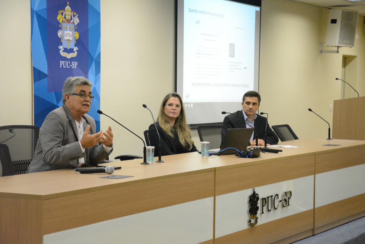 “Eventos como esse são fundamentais para nossa pós-graduação, nossa produção de pesquisa, nossa vida acadêmica. Precisamos abrir os olhos, entender o que está acontecendo no mundo e no Brasil, em termos de produção, divulgação e políticas para o desenvolvimento científico. Os palestrantes e os moderadores de hoje são autoridades nessas áreas e nos trazem, com seus comentários e posições, a possibilidade de refletir e dar passos necessários para que a PUC-SP se destaque ainda mais no campo da produção científica, tecnológica e de políticas públicas para o desenvolvimento do conhecimento científico no Brasil”, afirmou a profa. Maria Amalia.