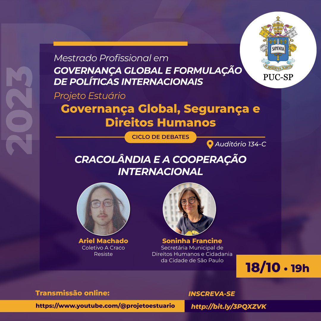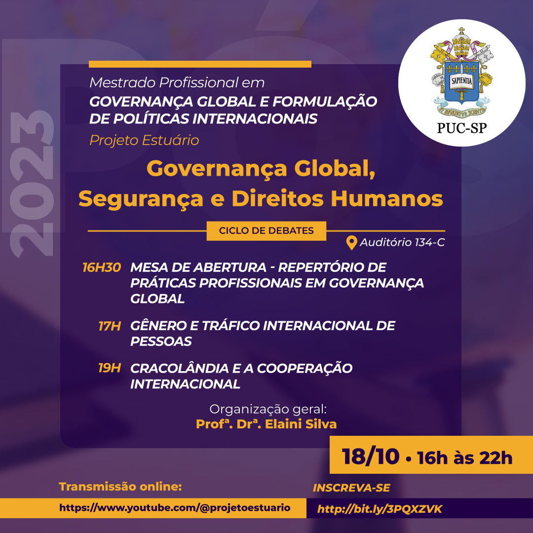 O mestrado profissional em Governança Global e Formulação de Políticas Públicas Internacionais realiza, dia 18/10, a partir das 16h30, um ciclo de debates sobre "Governança Global, Segurança e Direitos Humanos".