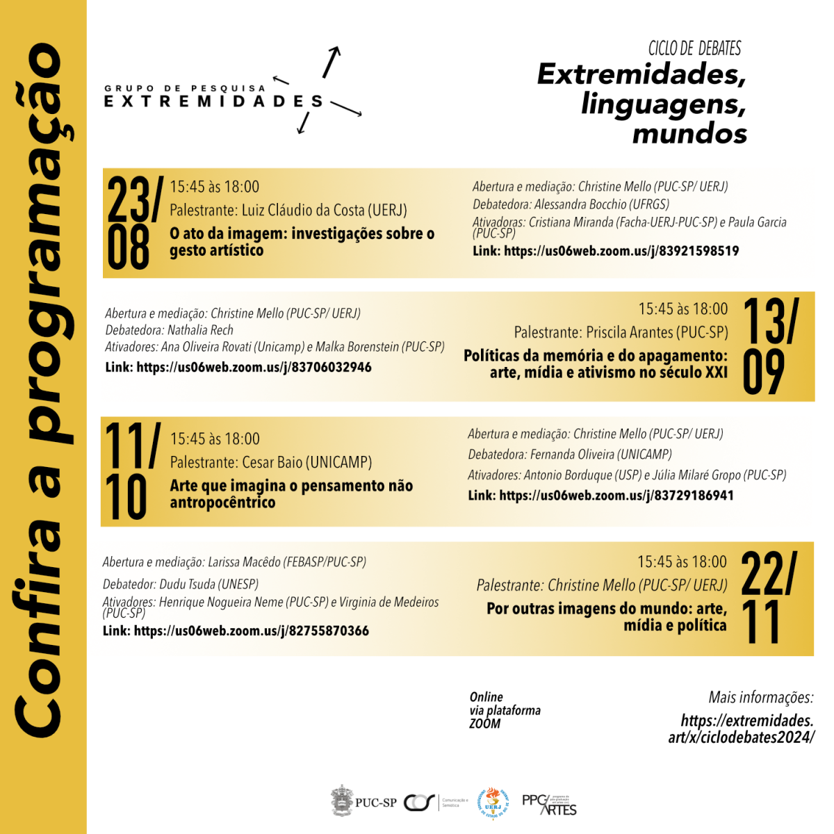 Informações completas e materiais sobre o evento: https://extremidades.art/x/ciclodebates2024/