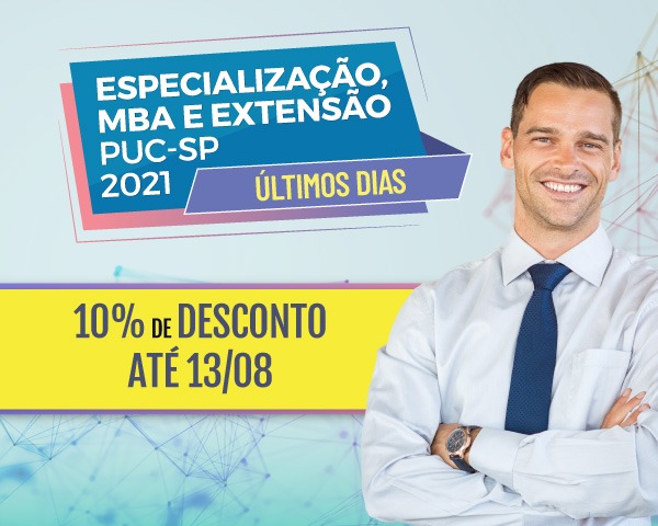 Estão abertas as inscrições para os cursos de Especialização, MBA e Extensão, com 10% de desconto em todas as mensalidades para quem fizer a matrícula até 13/8.