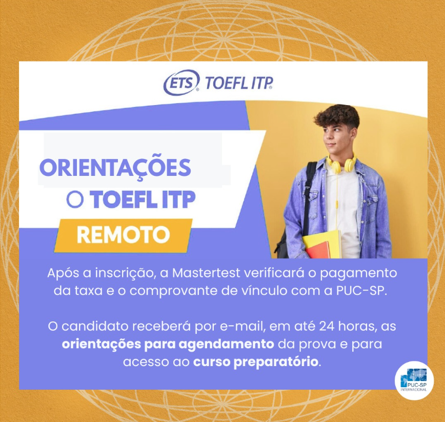 Estudantes, docentes e colaboradores da PUC-SP podem realizar a prova TOEFL ITP (Test of English as a Foreign Language) com valor promocional de R$199,00 por conta da parceria com a Mastertest Educational.