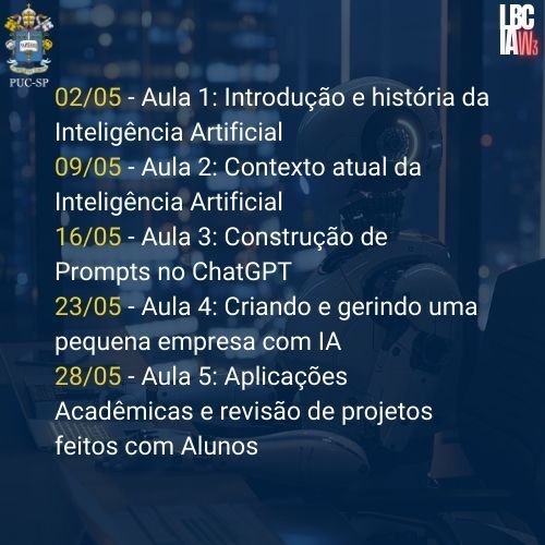 Estão abertas as inscrições para o curso de Extensão em Inteligência Artificial na Prática, com início em 2/5. Clique aqui para saber mais.