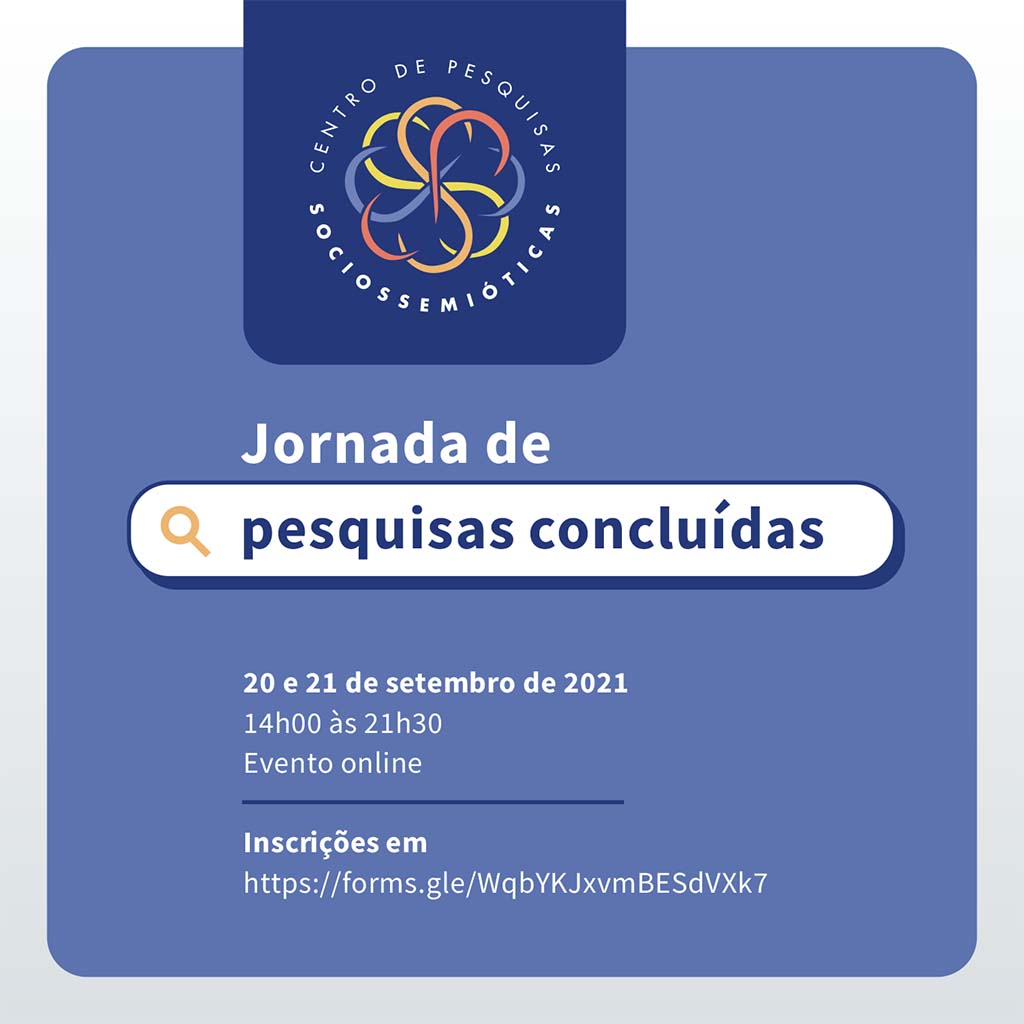 Estão abertas as inscrições para a Jornada de pesquisas concluídas, realizada pelo Centro de Pesquisas Sociossemióticas.