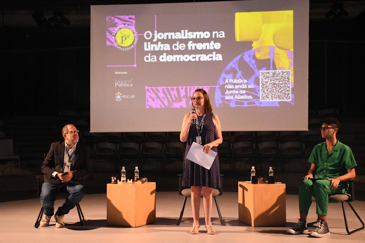 “Quando a Pública surgiu vivíamos um drama nessa profissão, que passa por tantos percalços. O trabalho delas e de outras pessoas que fazem jornalismo independente tem nos ajudado a compreender melhor o mundo e a fiscalizar os poderes. É uma honra recebê-las aqui para esta comemoração”, afirmou o prof. Fabio Cypriano, diretor da Faculdade de Filosofia, Comunicação, Letras e Artes (Faficla). A vice-reitora, profa. Angela Lessa, também esteve presente à abertura da atividade.