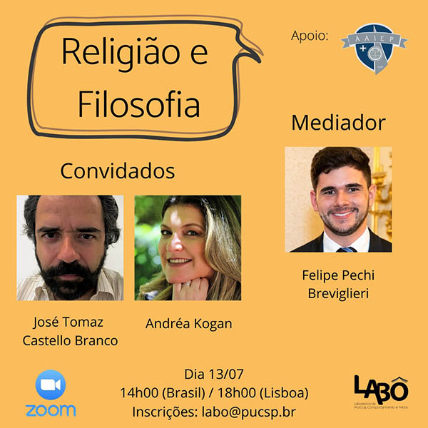 O Labô em parceria com a Associação Académica do Instituto de Estudos Políticos da Universidade Católica Portuguesa farão um evento especial sobre "Religião e Filosofia", no dia 13/7, às 14h, direto de Portugal, via ZOOM.
