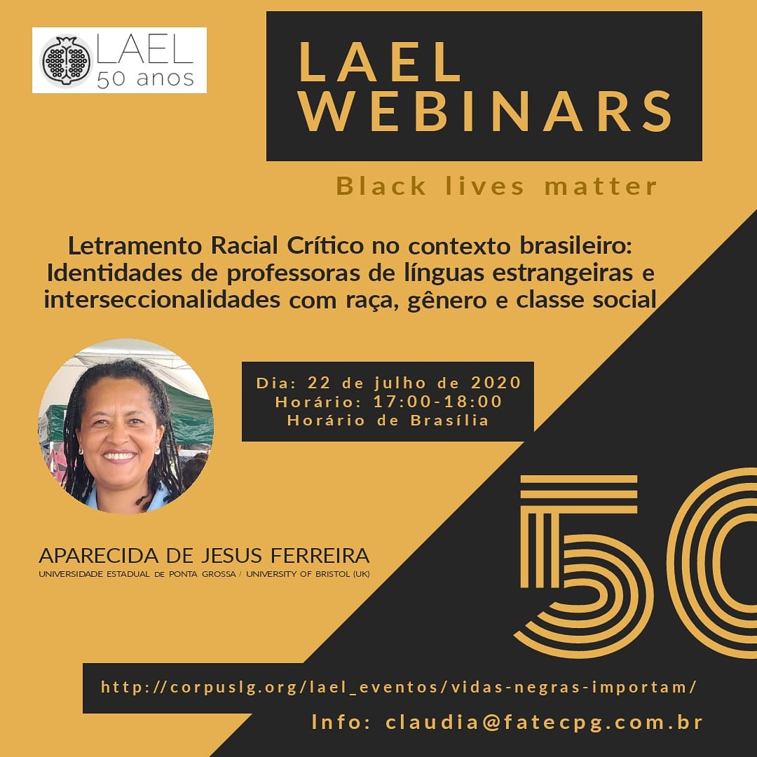 O Pós em Linguística Aplicada e Estudos da Linguagem (LAEL), em comemoração aos 50 anos, realiza uma nova série de webinars denominado “Black lives Matter”.