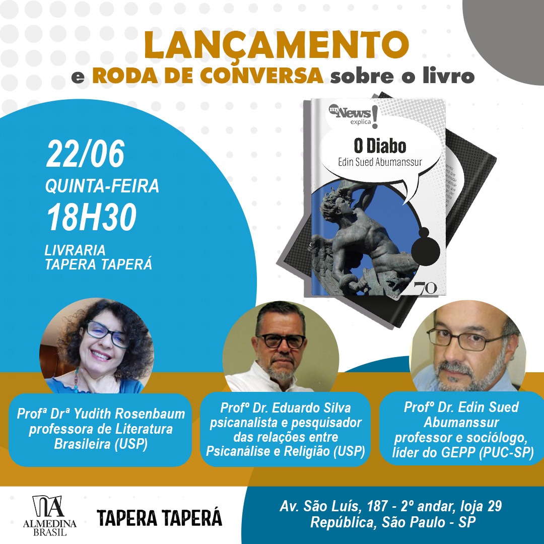 O prof. Edin Sued Abumanssur (Ciência da Religião) lança, dia 22/6, às 18h30, a obra O Diabo, dentro da série My News Explica. Na ocasião, também haverá debate sobre o tema.