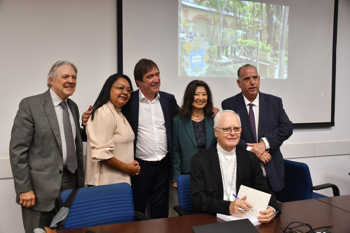 O evento, realizado no campus Monte Alegre, contou com a presença do cardeal Dom Odilo Scherer, arcebispo metropolitano de São Paulo e grão-chanceler da Universidade, além do reitor Vidal Serrano Jr., do pró-reitor de Educação Continuada, Paulo Sérgio Feuz, do pró-reitor de Cultura e Relações Comunitárias, Fábio Paulo Reis de Santana, e da professora Consuelo Yoshida, além de docentes, alunos e convidados.