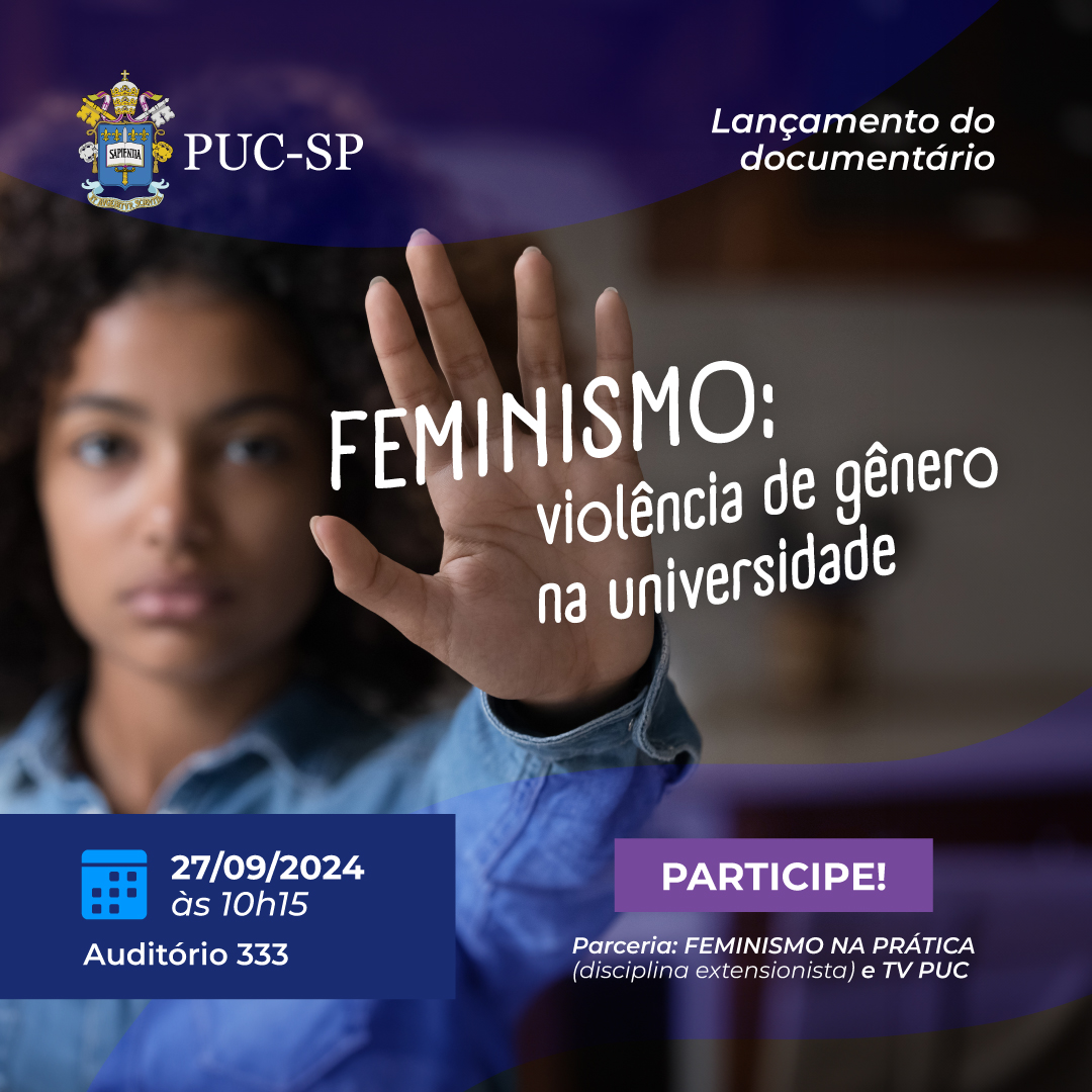 A Faculdade de Direito da PUC-SP divulga o lançamento do documentário Feminismo: violência de gênero na Universidade. A atividade acontece no dia 27/9, às 10h15, no auditório 333.