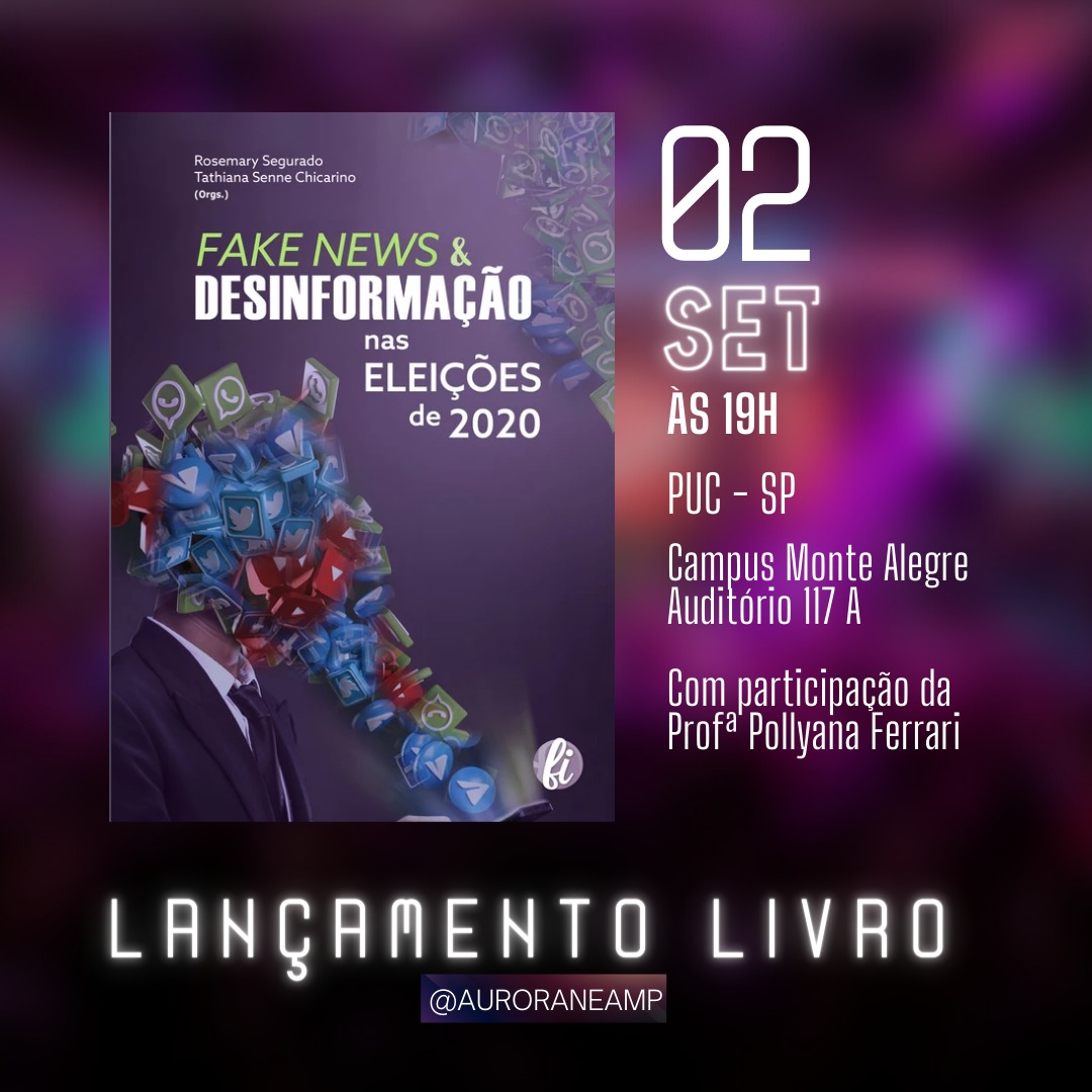 Os pesquisadores do Núcleo de Estudos em Arte Mídia e Política (Neamp, da PUC-SP) lançam, dia 2/9, às 19h, o livro Fake news e desinformação nas eleições de 2020.