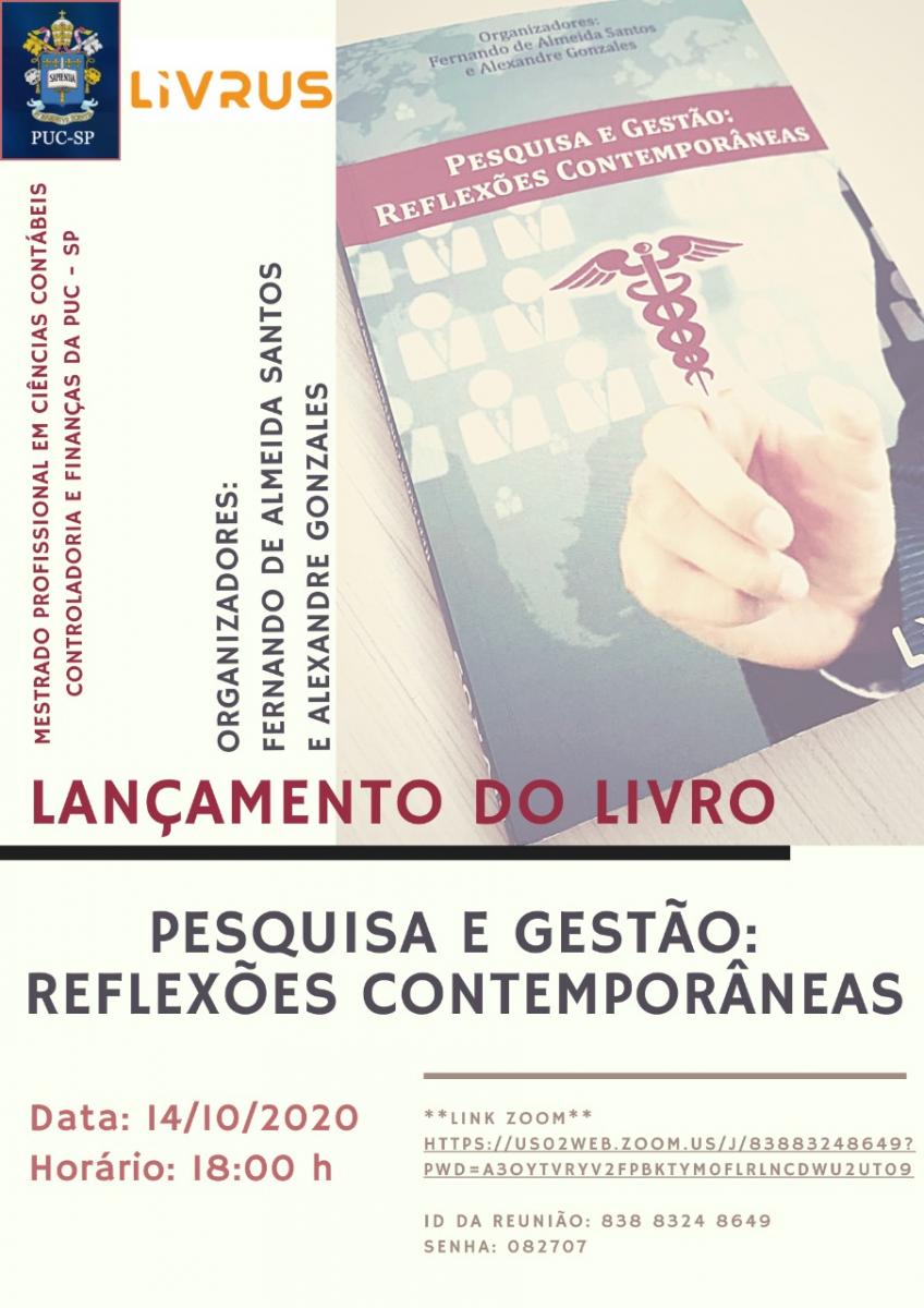 Controladoria e Finanças), o livro Pesquisa e gestão: reflexões contemporâneas será lançado dia 14/10, às 18h.