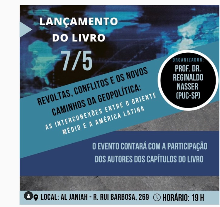 O livro Revoltas, conflitos e os novos caminhos da geopolítica, organizado pelo prof. Reginaldo Nasser (Relações Internacionais) e publicado pela Educ terá lançamento presencial, dia 7/5, a partir das 19h.