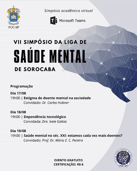 A Liga de Saúde Mental da Faculdade de Ciências Médicas e da Saúde da PUC-SP realizará seu sétimo simpósio, desta vez de maneira remota, via Plataforma Microsoft Teams. Não é necessário realizar inscrição para participar.