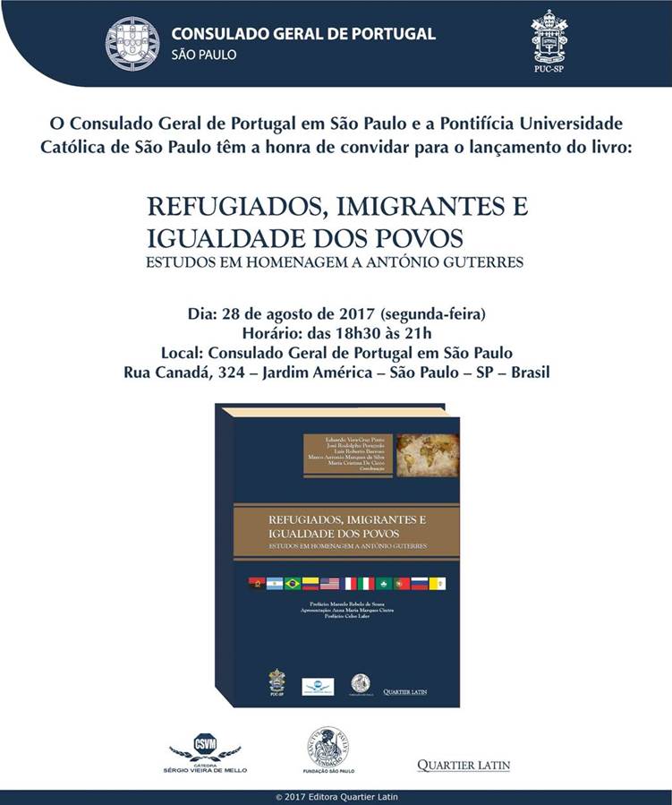 No contexto desta realidade complexa, a PUC-SP, a Cátedra Sérgio Vieira de Mello, a Fundação São Paulo e a editora Quartier Latin acabam de lançar o livro Refugiados, imigrantes e igualdade dos povos – Estudos em homenagem a António Guterres. A obra é internacional e tem coordenação de Eduardo Vera-Cruz Pinto (Universidade de Lisboa, Portugal), José Rodolpho Perazzolo (Fundação São Paulo, Brasil), Luís Roberto Barroso (Ministro do STF e prof. da Universidade de Brasília), Marco Antonio Marques da Silva (PUC-SP, Brasil) e Maria Cristina De Cicco (Universidade de Camerino, Itália).