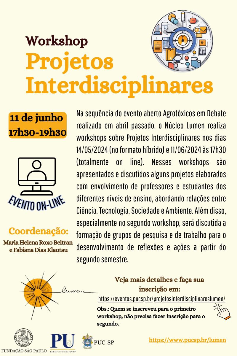 Saiba mais: https://eventos.pucsp.br/projetosinterdisciplinareslumen/