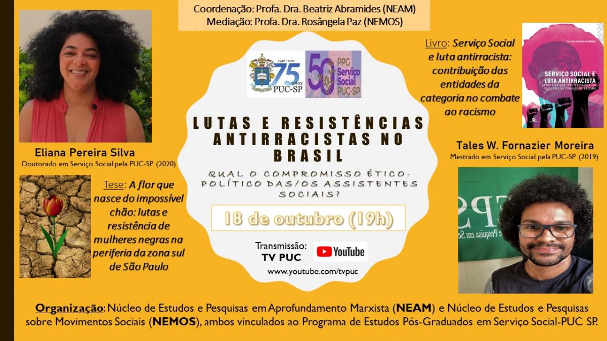 Dia 18/10. Às 19h, se realiza a live Lutas e Resistências Anti-Racistas no Brasil: Qual o compromisso ético-político das/dos assistentes sociais?.