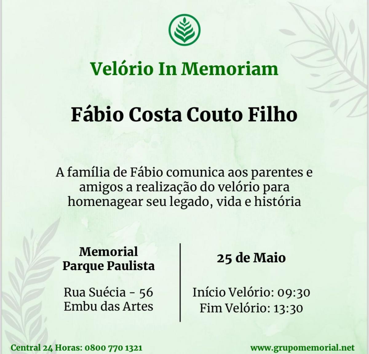 A PUC-SP lamenta o falecimento, ocorrido na madrugada deste dia 24/5, do prof. Fábio Costa Couto Filho.