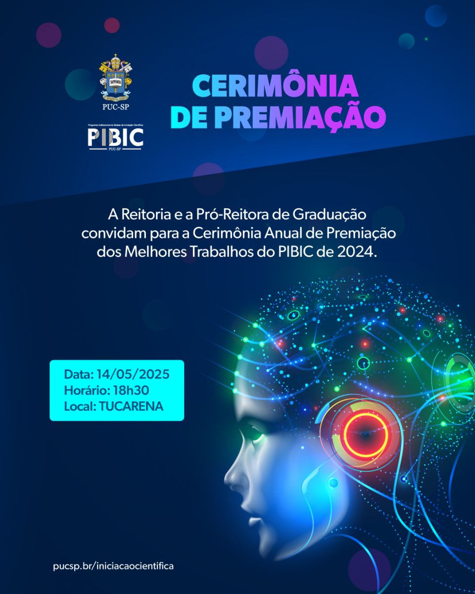 O evento será realizado no Tucarena. Clique aqui e conheça o Programa Institucional de Bolsa de Iniciação Científica da PUC-SP (PIBIC).