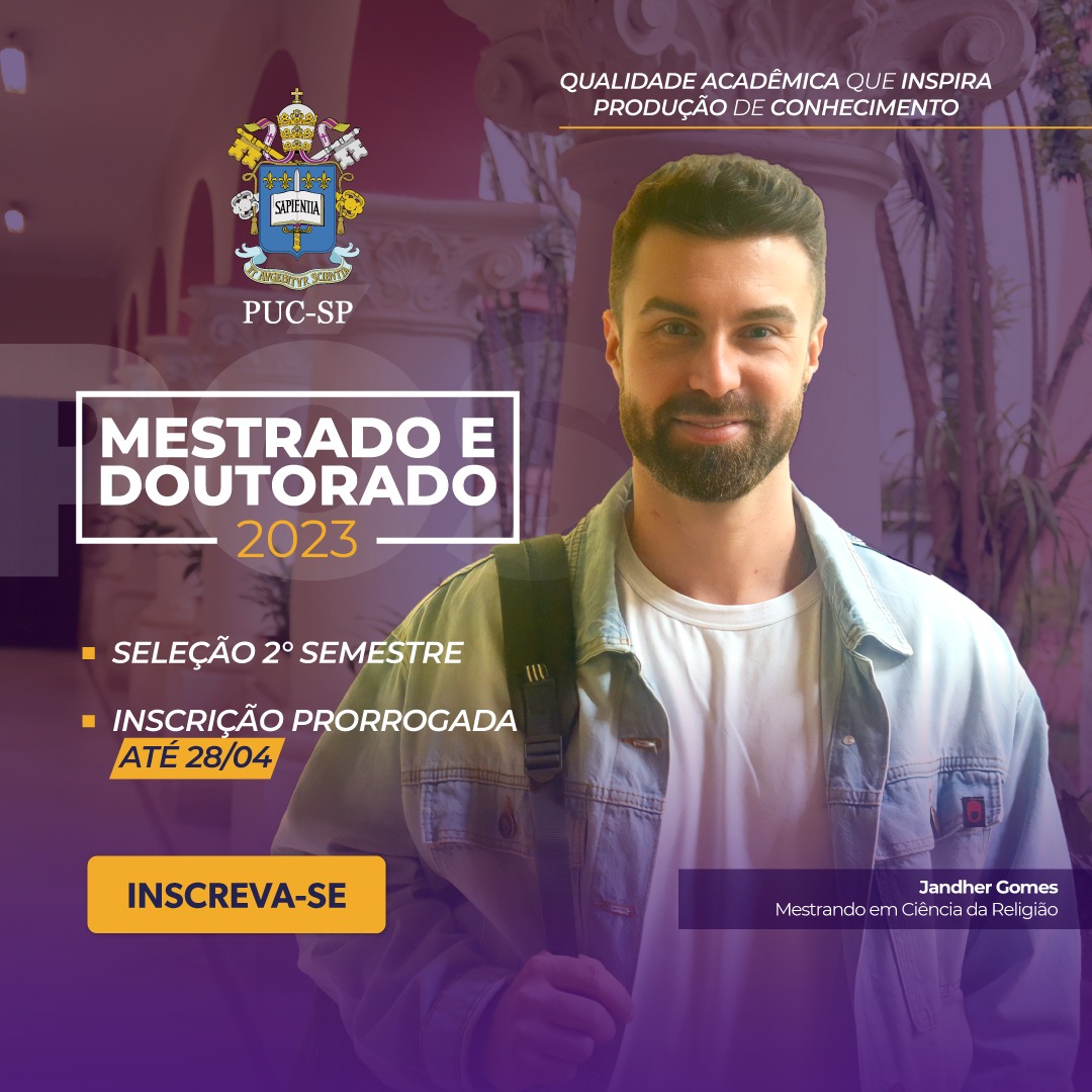 Foram prorrogadas, até 28/4, às 16h, as inscrições para o processo seletivo dos cursos de pós-graduação stricto sensu da PUC-SP, para início no segundo semestre de 2023.