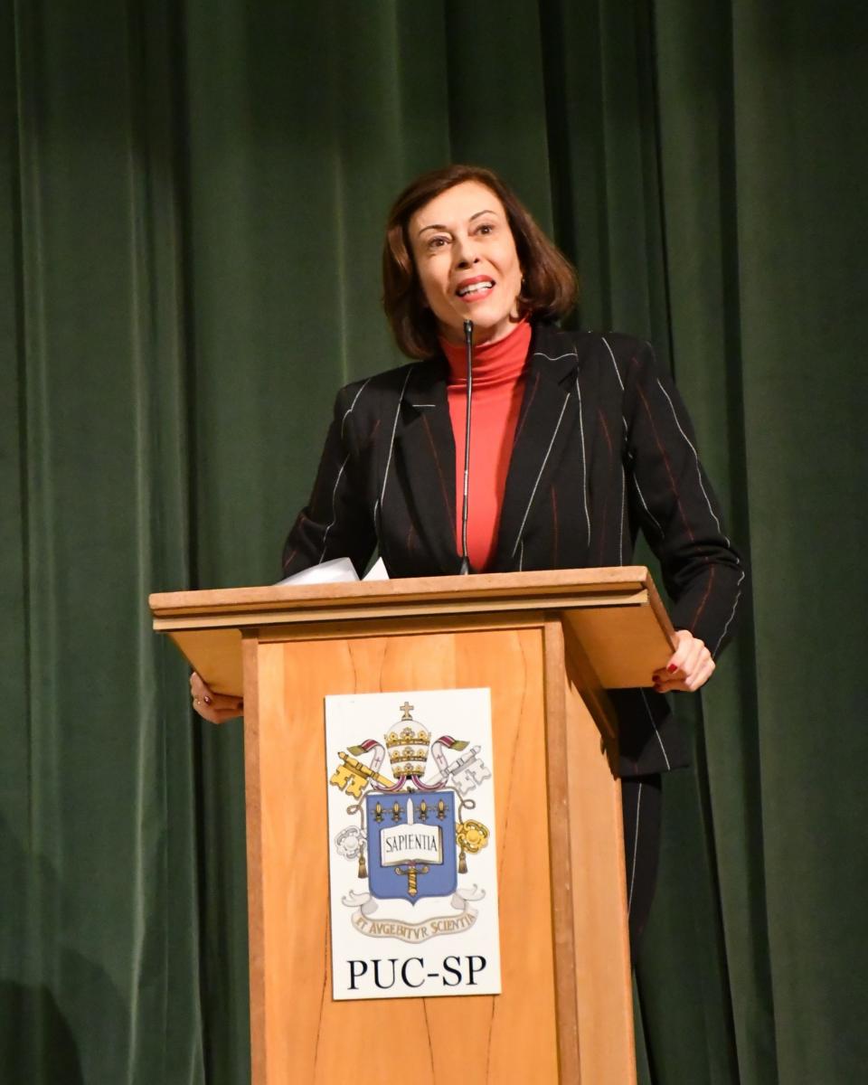 “É um orgulho tê-la como uma das nossas professoras e pessoa fundante dessa verdadeira escola de Direito Tributário que é a PUC-SP. Nossa felicidade, hoje, também é por nos brindar com seu conhecimento, acumulado não somente na experiência como ministra, mas por toda a sua trajetória profissional. Esta Universidade, que também é sua há tantos anos, hoje a recebe de forma especial e de braços abertos”, afirmou o reitor.