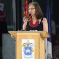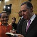 ”Não sou da área de Direito, ministro Barroso, então o vejo aqui como o povo o vê. E o que eu vejo, escuto e acompanho é um movimento que merece todo o nosso respeito. O movimento de uma instituição brasileira que tem o sr. à frente e que fez uma admirável inversão, se tornando não apenas uma instituição distante e povoada por advogados e grandes causas, muitas delas incompreensíveis, mas uma instituição povoada pelas causas do presente, pelas que são de fato importantes para construir um país que supere sua história escravocrata, sua história de preconceitos, de violências e de enormes disparidades sociais e econômicas. É uma enorme honra para toda a Universidade recebê-lo aqui hoje, neste teatro, palco de lutas e de resistência democrática.”