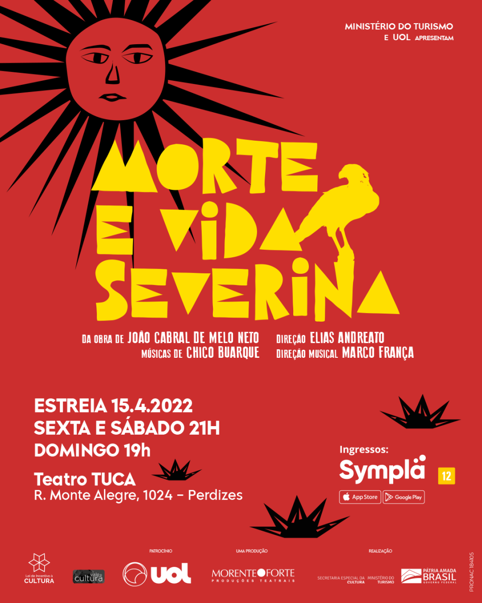 Está em cartaz no palco principal do Tuca a peça “Morte e Vida Severina”, obra de João Cabral de Melo Neto, com direção geral de Elias Andreato, músicas de Chico Buarque de Hollanda e direção musical de Marco França.