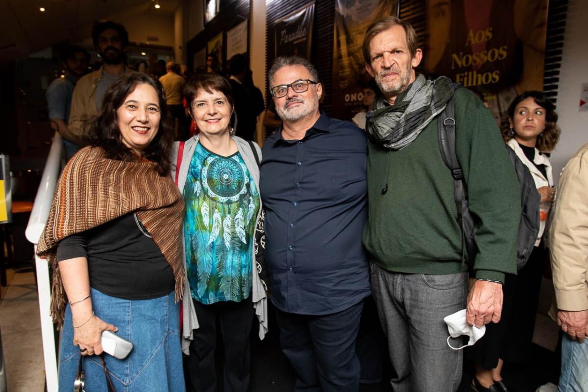 Cerimônia de Abertura da Mostra: (na foto) Rita Leão e Cláudia Mogadouro (Coletivo Janela Aberta), Chico Guariba (Diretor da Mostra Ecofalante), e prof. Pedro Aguerre (Assistente especializado da Pró-Reitoria de Cultura e Relações Comunitárias da PUC-SP)